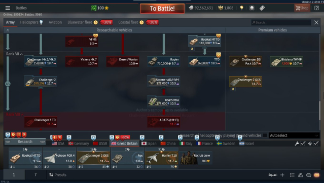 Challenger 2 OES Прекраснейший тяжело бронированный танк с мощным с точным орудием, идеален для сражений на топ тире где нужно быстро набрать очки для вылета на штурмовике.