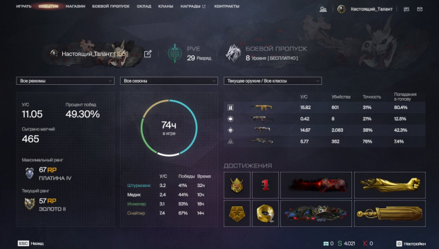 ⭐63.911 корон (29 разряд PVE) | 11.768 деталей | Золото 2 | 8 уровень БП (не куплен) |