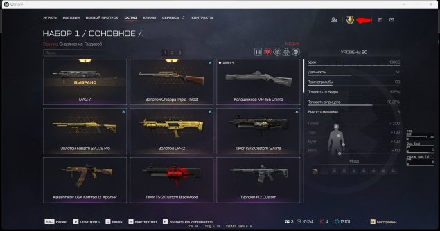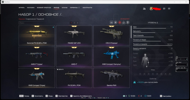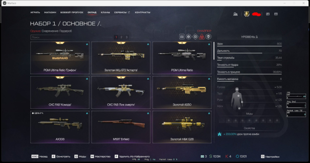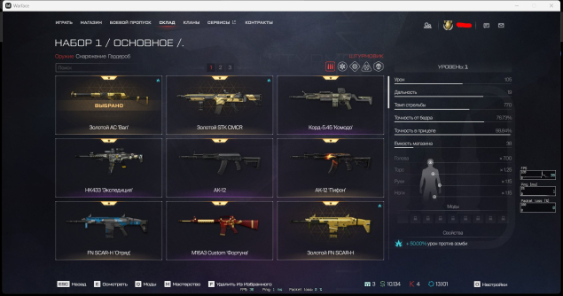 С актуального есть золотой FN SCAR-L PDW, FAMAE SAF-200, XM8 Compact, дигл, сигсауер, таурус хантер, ст кинетик, PGM Ultima Ratio, золотой AS50, золотая МЦ-572 Астарта, MAG-7, золотая чапа, золотой и обычный вал, корд, ак-12, золотой/элитный/отряд FN SCAR-H, M16A3 Custom. (остальное на скринах, выписал только актуальное на данный момент).