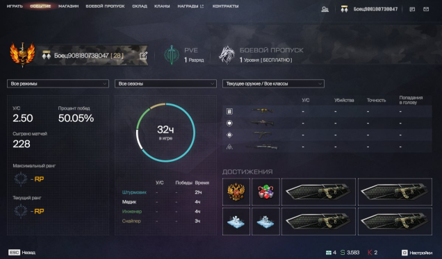 Краткое описание: ✅Быстрая ВЫДАЧА✅|28 Ранг|⭐Золотой АС «Вал»⭐|М16А3|AK-15|АМ-17|Mauser Kar98k|Glock|Скины|💙
