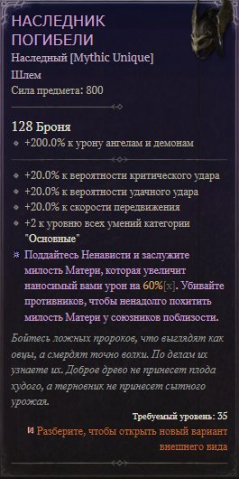 • Любые предметы: экипировка, аспекты, руны, сеты на боссов и т.п