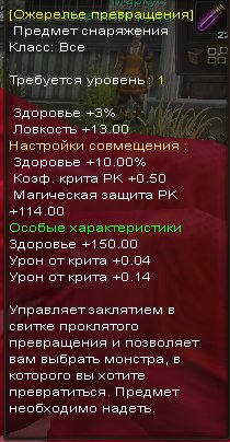 Сервер: Азмара-БлэкФорестКраткое описание: Ожерелье превращения 0.18 урона от крита