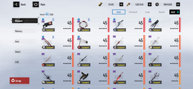 Платформа: AndroidКраткое описание: [Global] 108 Lvl 15 S Omniframes. 15 S Weapons + 16500 BC