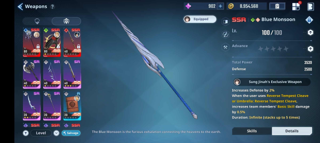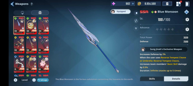 Demon King’s Dagger A5, Stormbringer A2, Moonshadow A1, Plum Flower Sword A1, Divine Quarterstaff A2, Kasaka’s Venom Fang A2, Thetis’ Grimoire A3, plus others (Skadi, Longsword, Scythe, etc.)