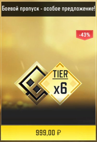 Краткое описание: Боевой пропуск — особое предложение за 999₽: TIER x6, -43%