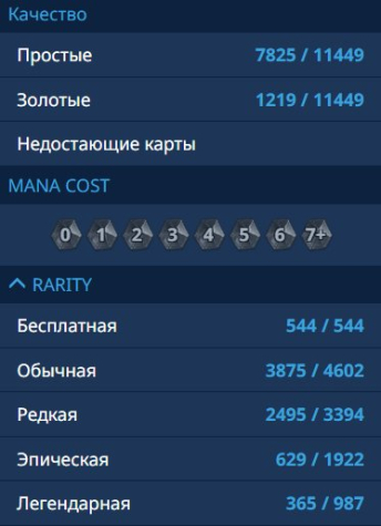 Огромная коллекция, множество золотых карт, все дополнения, метовые колоды и высокий уровень достижений — всё это делает аккаунт идеальным как для коллекционера, так и для активного игрока.