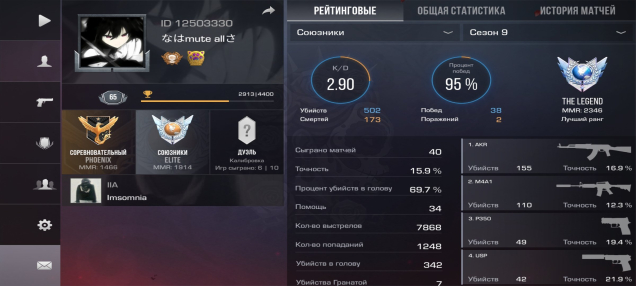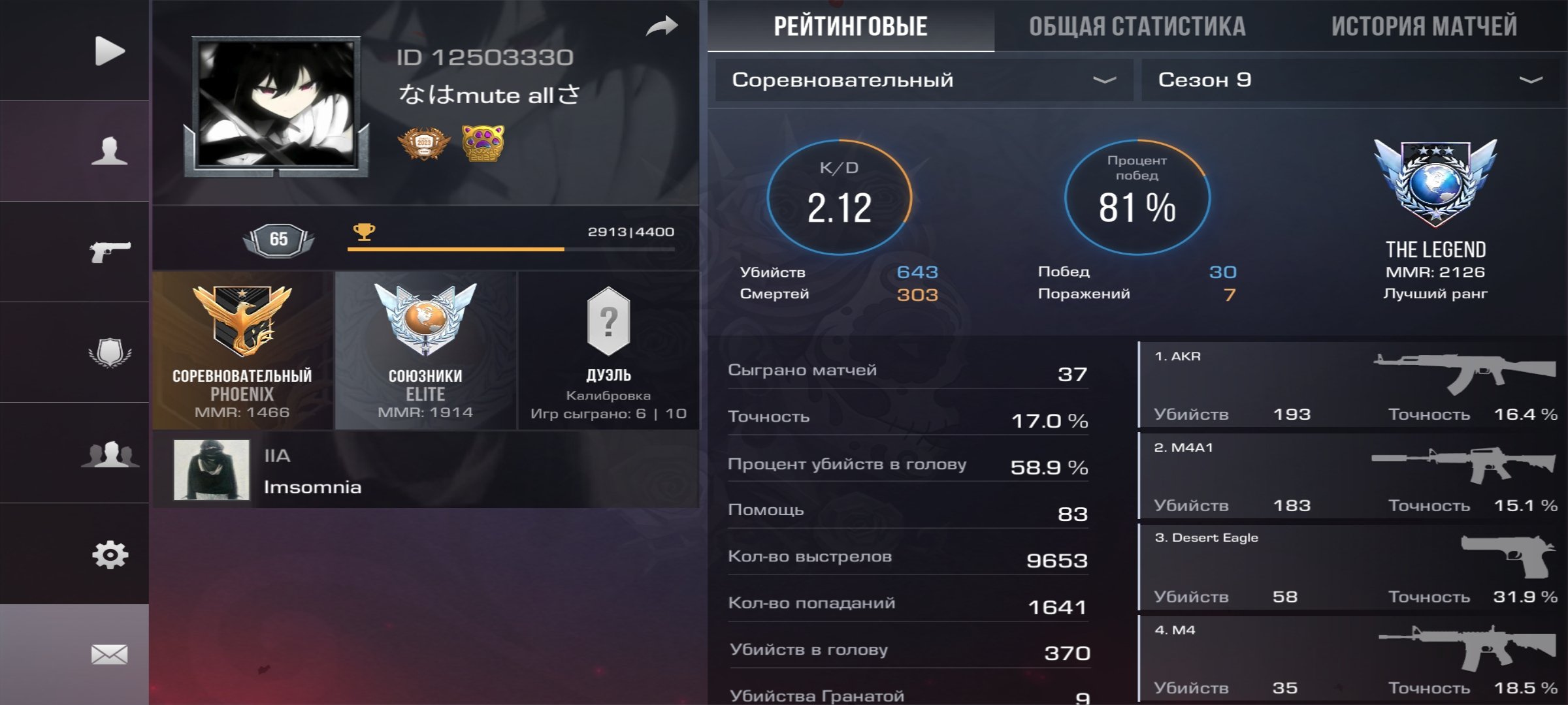 Звание: LegendКраткое описание: 💪🌠ПРОДАМ АКК 300 ЧАСОВ, НАПЫ ЛЕГЕНДА, ММ ЛЕГЕНДА, ДУЭЛИ ЛЕГЕНДА, АПАЛ БЕЗ СОФТА 💪🌠