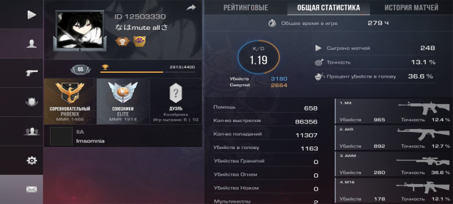 ОБЩАЯ СТАТИСТИКА — 1.19 K/D