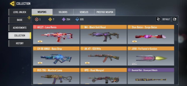 🔫 Skins Gun: 1 Mythic — 7 Legendary — 264 Epic — 695 Rare🔫