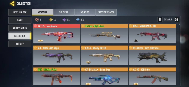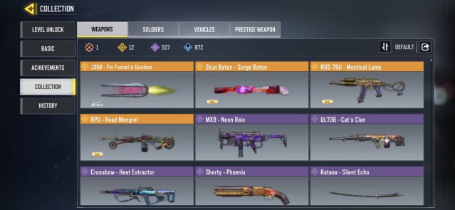 🔫 Skins Gun: 1 Mythic — 12 Legendary — 517 Epic — 972 Rare🔫
