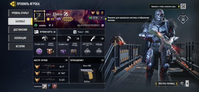 Краткое описание: Топ ак 366 лвл, 5 лег, 1 лег скин очень много редких скинов