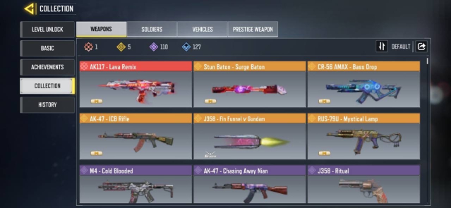 🔫 Skins Gun: 1 Mythic — 5 Legendary — 110 Epic — 127 Rare🔫