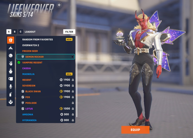 D.Va «Palanqin»; Doomfist «Tropical»; Mauga «Йотунн», «Демон-рокер»; Orisa «Megasoma», «Мороженое», «8-бит»; Reinhardt «8-бит»; Roadhog «Polar Hog», «Клоун»; Sigma «Пчеловод», «Carbon Fiber»; Wrecking Ball «Ein»; Ashe «Марди Гра», «Колдун», «Демон-рокер»; Bastion «Тыква»; Cassidy «Нежить», «Xiake», «Космический рейдер»; Echo «Ретрофутуризм», «Хот-род»; Freja «Галактический»; Genji «Скелет»; Junkrat «Эльф», «Король Джеймисон»; Mei «OWCS», «Ретро-звезда»; Pharah «Анубис»; Reaper «Кавалера», «Лю Бу», «Озноб»; Sojourn «Пожарный»; Soldier «Бессмертный»; Symmetra «Небесная»; Tracer «Путешественница», «Роза», «Герой сердца»; Widowmaker «Скорпион», «Керриган»; Ana «Хранитель духов», «Сакура»; Baptiste «Flirty Flare», «Фанки», «Боевой медик»; Brigitte «Охотница на вампиров», «Лазурный дракон», «Сила сердца», «Генерал», «Перламутровая»; Illari «Ночная тень (готика)»; Lifeweaver «Ледяной провидец», «Демон-рокер», «Вампир-регент»; Lucio «Джазовый», «Осьминог»; Mercy «Маг», «Мистический лебедь», «Роза Величия», «Зомби-доктор»; Zenyatta «Мастер ванны»