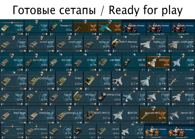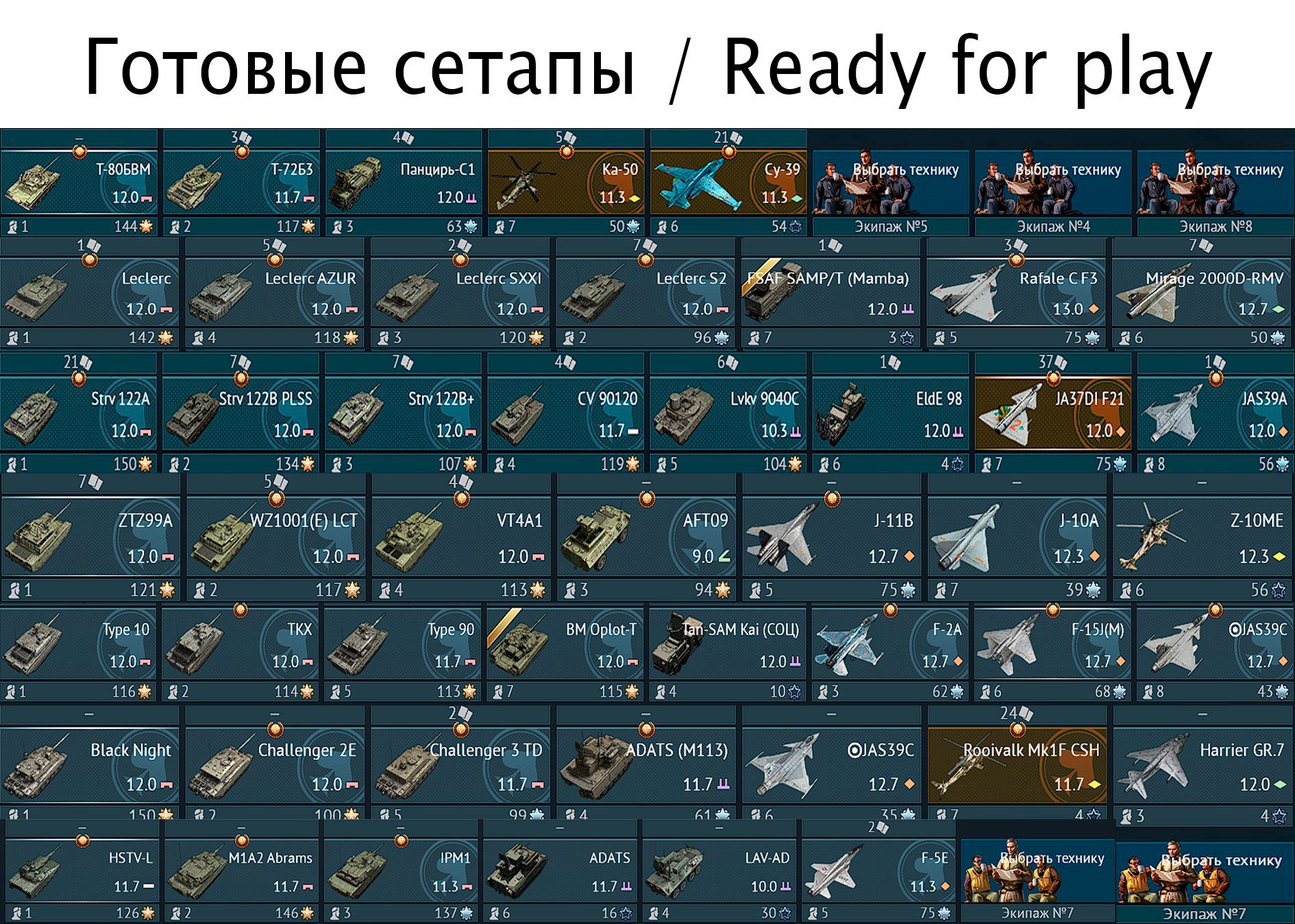Подробное описание: Я наиграл в это более 5000 часов, чтож, наигрался. Личный аккаунт, регион Global (не пиксель, не путать), реган был в 2017 году, все было прокачено ручками и донатом, проводил здесь почти каждый день, повидал многого. Прокачаны все метовые сетапы наций в совместных боях, присутствует уникальная техника, все выложено в скринах.