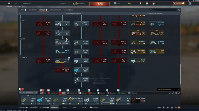 Су-30СМ с полными модификациями, качается МиГ-29, осталось 30.000 опыта.