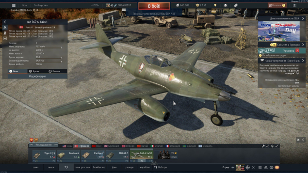 Подробное описание: так же прокачана ветка за немцев Me 262 A-1a/U1 самолет и первый вертолет