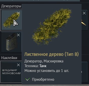 Куплены 2 типа кустов (Лиственное дерево тип А и тип В). Имеется 5 дакимакур (аниме подушек). почти 13кк серебра. Заработано более 2 миллионов опыта в ветку СССР. Аккаунт создан на ГАЙДЖИН (не стим, не пиксель шторм).