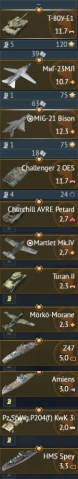 ✅ Премиум техника: Mig-21 Bison, МиГ-23МЛ, Т-80У-Е1, ( на всех премах АСЫ ), Challenger 2 OES, Churchill AVRE Petard, Turan II, Martlet MK.IV, Morko-Morane, Z47, Amiens, Pz.Sp.Wg.P204(f)KwK3, HMS Spey. — 7 фото