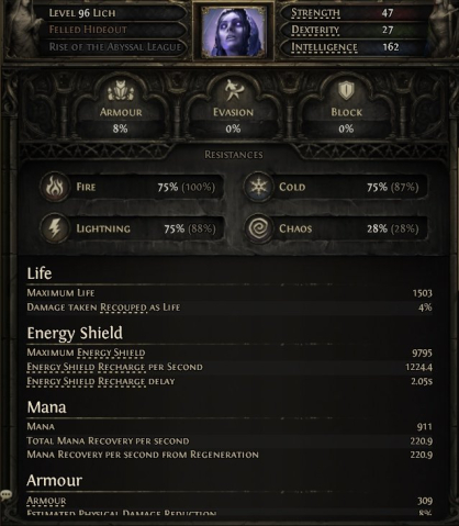 10k еса, 75% всех резистов, 52% хаос реза, 4 лабы