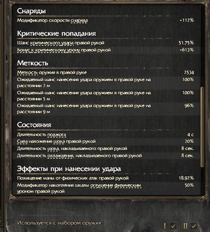 — 52% крит шанса, 613% крит дамаги, с высокой скоростью атаки.