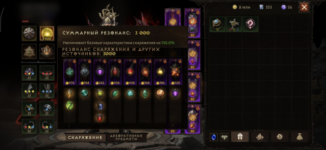Краткое описание: 3000 рез, топ камни 4/5 -5/5 вещи 30 лвл + альт для фарма
