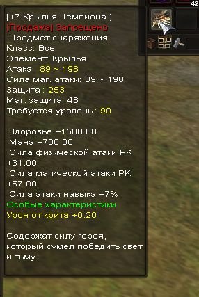 Сервер: (Classic) Азмара-ТеназарКраткое описание: Крылья Чемпиона +7