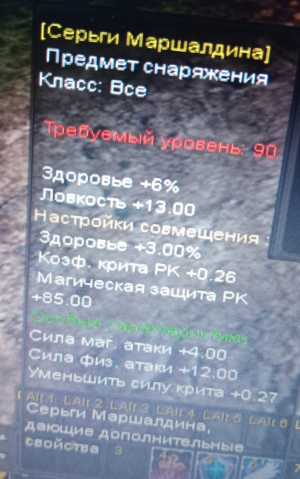 Сервер: Азмара-БлэкФорестКраткое описание: Серьга Маршалла 0.27,12 физ атаки