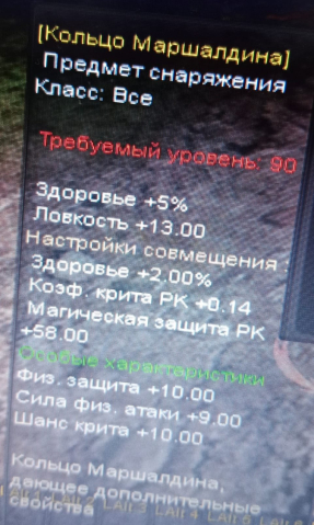 Сервер: Азмара-БлэкФорестКраткое описание: Кольцо Маршалла 10 шк 9физ атаки