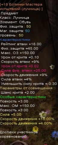 Подробное описание: 50+18 14% бега 25 физ 0.02 ботинки лучницы