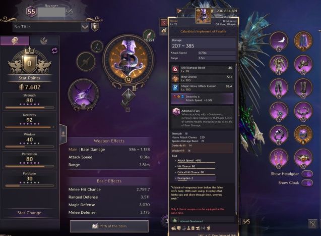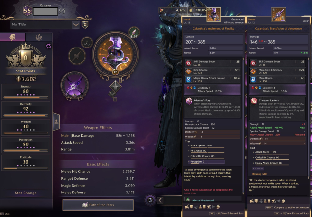Оружие с Калантии: двуруч 12ур (скил адентус), копье 12 уровня, плащ 7ур, кольцо 8ур, все трейты выролены и прокачены кроме статовых. Кинжалы с тевента (апнутые).