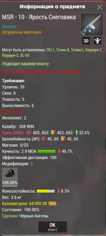 Сервер: RU-4Краткое описание: (МСР10) MSR-10 -дерево м8 (394-667) 33.4% урон -60.0 кучность -25 износ (все сервера)