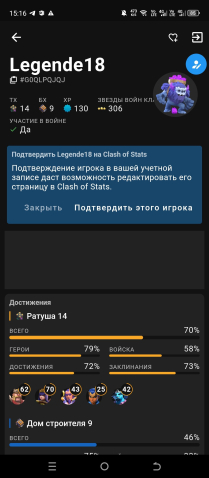 Уровень Ратуши: 14Краткое описание: 【𝟭𝟰 ТХ】 ❰🌟ФУЛЛ 𝟳𝟱%🌟❱ 🟢 【💵СМЕНА НИКА💵】 🟢 【62/70/42/43/25】 🟢 【𝟲 ЭПИК СНАРЯГ🟣】 ❰💚❱