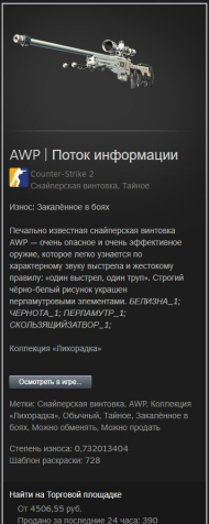 Краткое описание: ⚡️AWP | Поток информации | Износ: Закалённое в боях | ⚡️