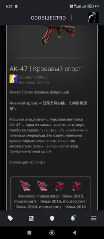 Краткое описание: AK-47 | КРОВАВЫЙ СПОРТ + 4 топ накл