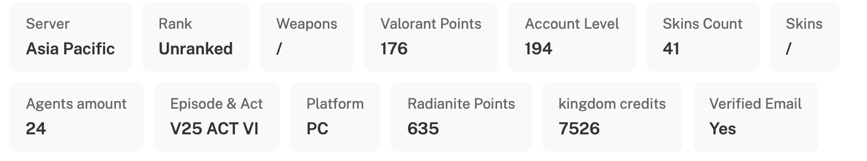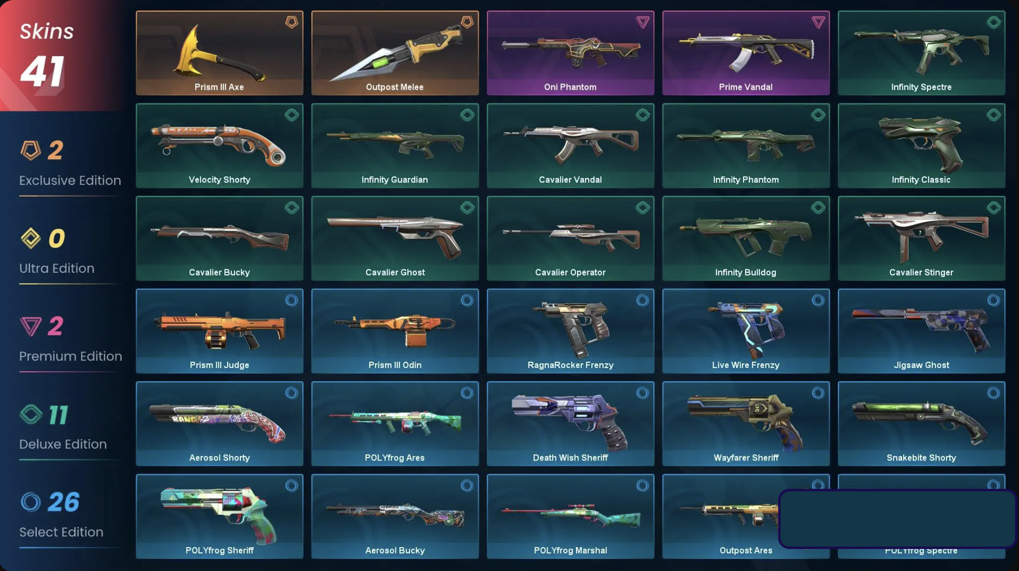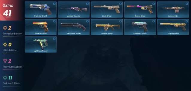💎 Выведите свой игровой процесс в Valorant на новый уровень с этим премиум-аккаунтом, включающим 41 эксклюзивный скин и доступ ко всем 24 агентам.