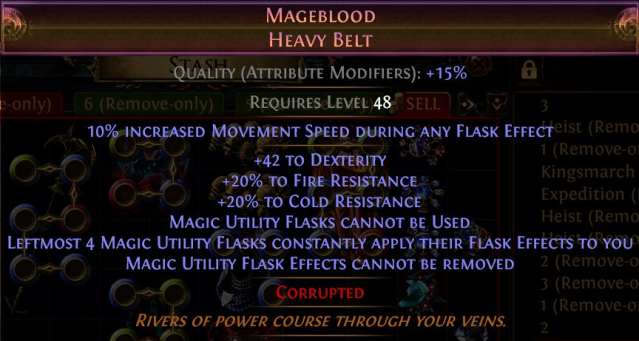 Краткое описание: 🔥 Пояс Mageblood / Волшебная Кровь на 4 фласки, коррапт 10% мс