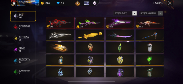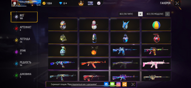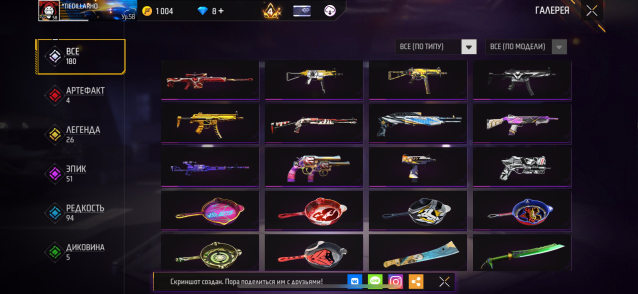 Подробное описание: Есть 4 эволюции: 1- ястреб вальяжный бродяга, 2- М1887 сингулярность, 3- М1014 призрачный дракон, 4- SCAR меголодон альфа, Косы фейерверк, Серп достигатора Безумный портной Внутренний шепот, катаны: огненный смерч, трикстер суматохи, BOOJAH блинг, ледяное перо; нож кунай; биты бам, зонтик с уточкой и т.д по костюмам тоже очень много вкусного