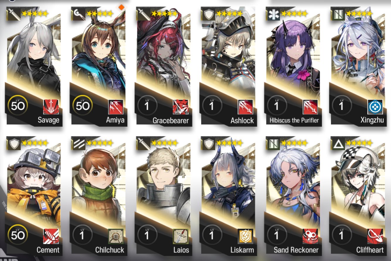 6⭐Exusiai the New Covenant 6⭐Saria 6⭐Eyjafjalla the Hvít Aska 6⭐ Sankta Miksaparoto 6⭐Lessing