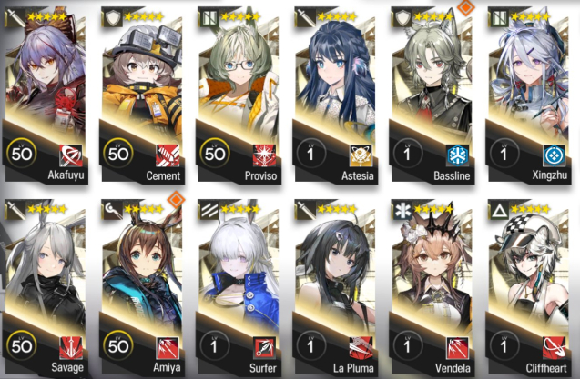 6⭐Exusiai the New Covenant 6⭐Magallan 6⭐Yu 6⭐Ifrit 6⭐Phantom 6⭐Eyjafjalla the Hvít Aska 6⭐ Sankta Miksaparoto 6⭐Lessing