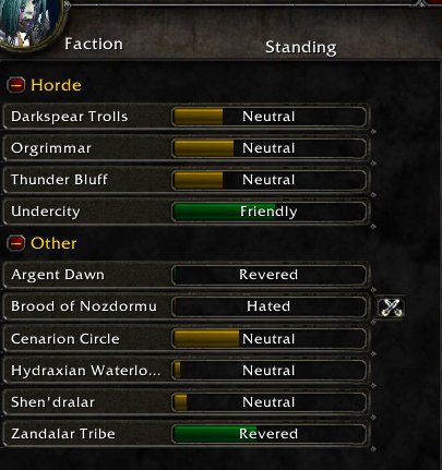 Репутация: Argent Dawn — Revered, Zandalar Tribe — Revered