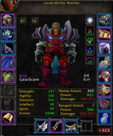 Воин(Орк), 60 уровень 814 ГС + родная почта