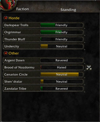 Репутация: Argent Dawn — Revered, Zandalar Tribe — Revered