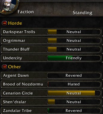 Репутация: Argent Dawn — Revered, Zandalar Tribe — Revered