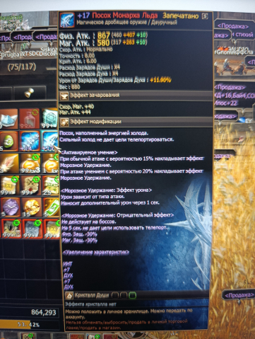 Название: Запечатано на персонаже +17 посох льда, +14 лук льда +10 венец