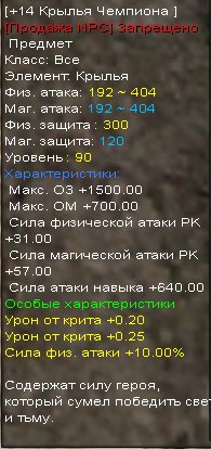Сервер: Karos Reborn (karos.to) — PandoraКраткое описание: 🐲 Крылья Чемпиона +14 (0.45-10% физ. атака) 🐲