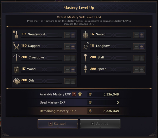 4 оружия 200 лвл, общая мастерка 1450