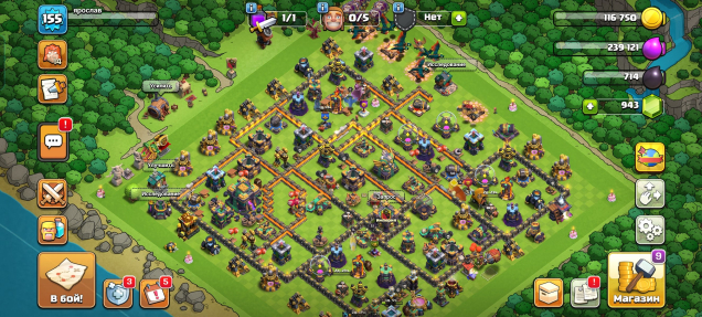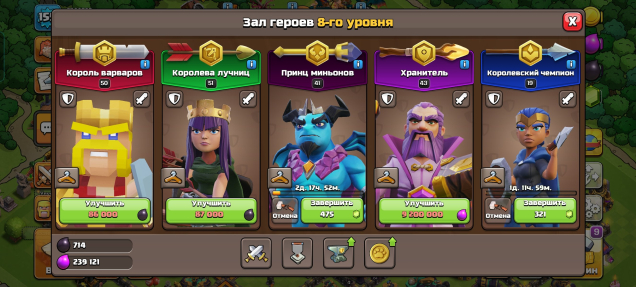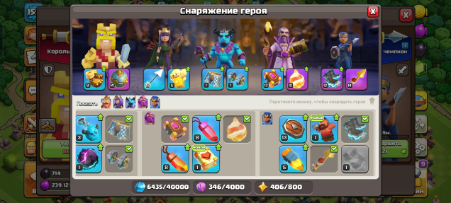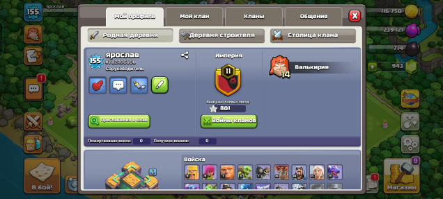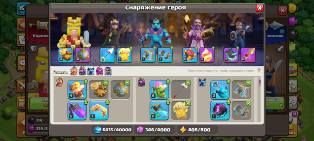 Уровень Ратуши: 14Краткое описание: Уровень: 155 🔝 герои: 50/51/41/43/19 👑 топ снаряга — копье, мяч, сапоги 🟣