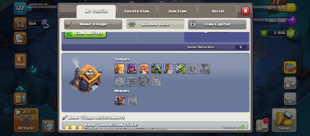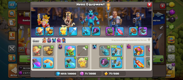 Уровень Ратуши: 13Краткое описание: 🔵𝟕𝟓% ТХ 𝟏𝟑🔵 ⭐ГЕРОИ 𝟓𝟕/𝟓𝟔/𝟐𝟕/𝟑𝟗/𝟔⭐ 🧥𝟑 СКИНА🧥 💎𝟐𝟗𝟓𝟎💎 👑𝟏𝟐𝟐 ЛВЛ👑✅Быстрая ВЫДАЧА✅