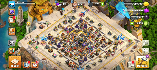 Уровень Ратуши: 17Краткое описание: Уровень:190🔝 герои:56/62/52/52/18👑ТОП СНАРЯЖЕНИЕ 🔝 Египетское Оформление ⚠️ Бесплатная смена Ника ✅
