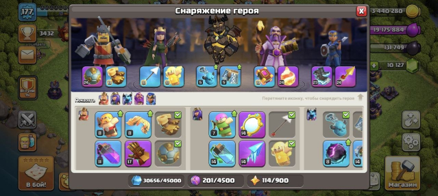Уровень Ратуши: 15Краткое описание: 🟨🔥🔥【TH 15 FULL 95%】⚡ 177 LVL ⚡💎 10.000 ГЕМОВ 💎【ГЕРОИ — 83/83/58/33】⚡ С ПОЧТОЙ ⚡ СКРИНЫ 🟨🔥🔥